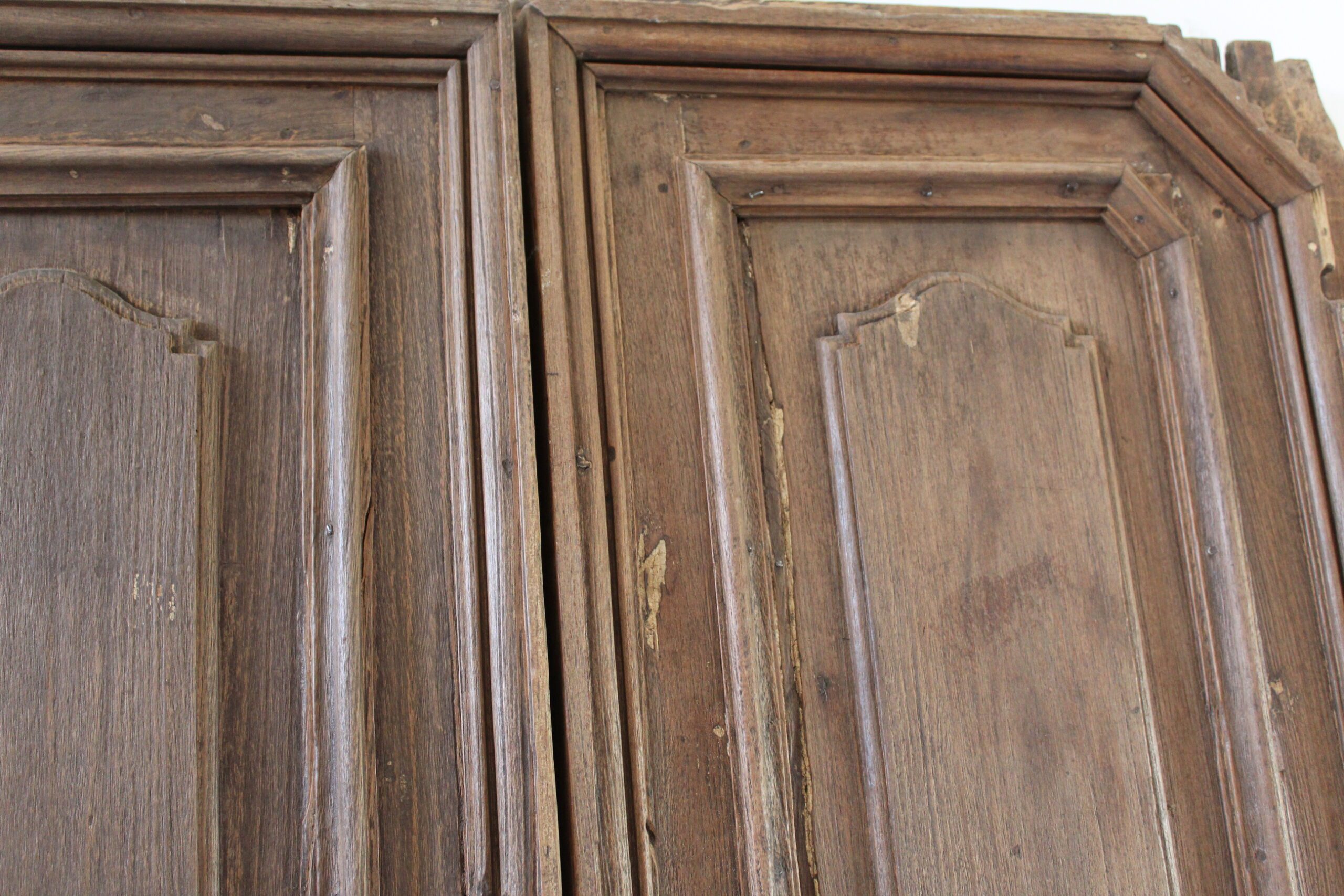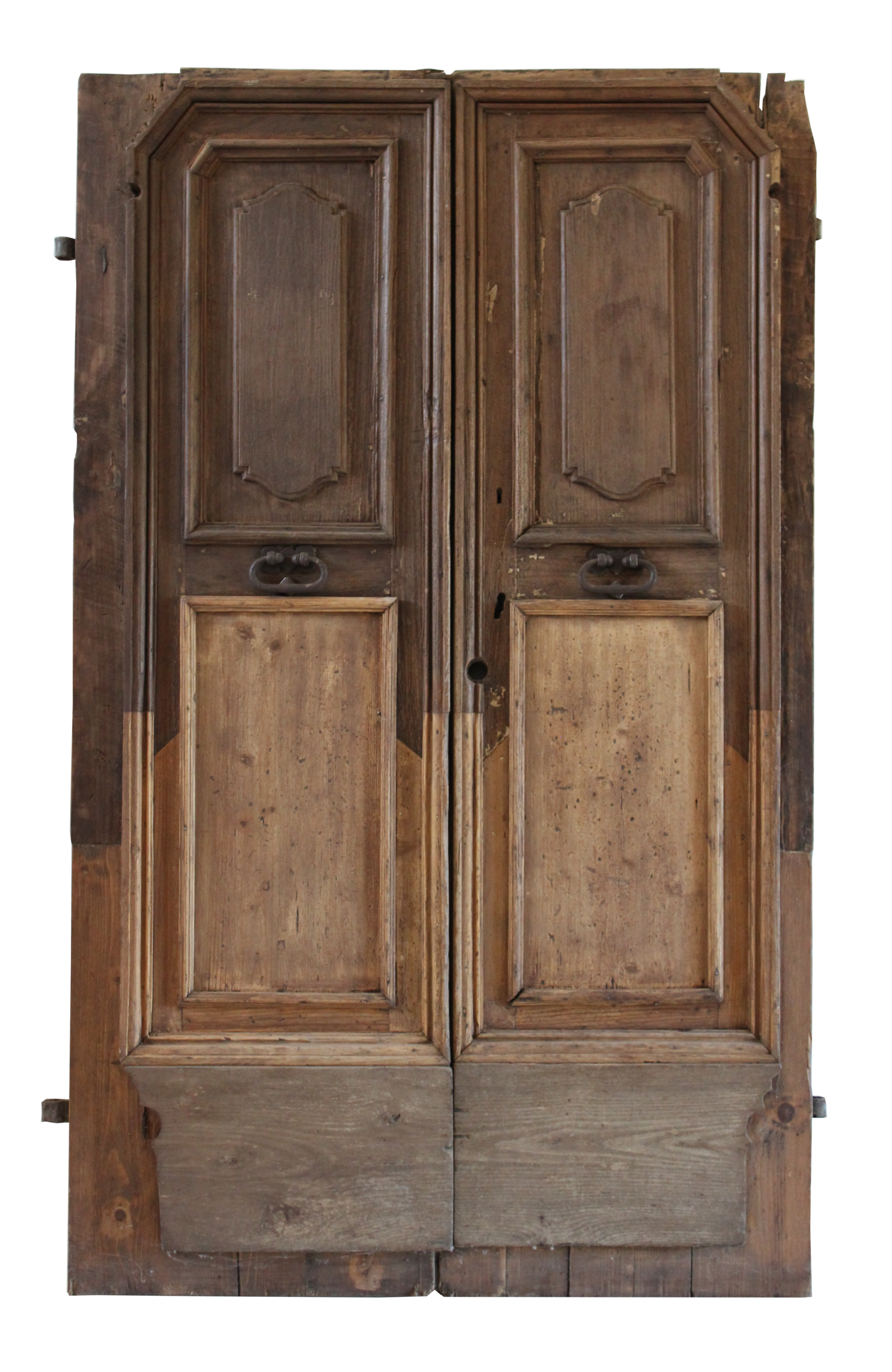 Porta antica umbra del ‘600 in castagno dalla meravigliosa patina. Le maniglie originali sono di bella fattura. La bugnatura superiore è mossa mentre il riquadro inferiore è piano.